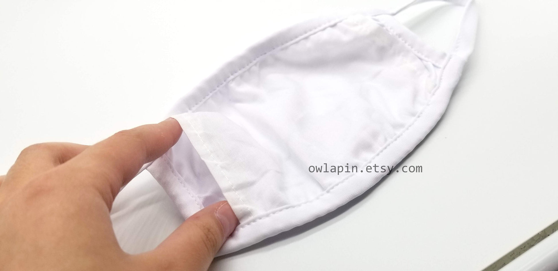 MACHINE WASHABLE! Machine wash in cold water and dry on low heat. Use a delicate bag if you have one, to prevent the straps from wrapping around anything and getting stretched out! The mask has one layer of polyester fabric and is lined with cotton fabric, open at two ends to serve as a pocket you can insert a filter into. *This mask does not serve as proper protection against solvents, chemical fumes, or pathogens. It CAN help prevent you from touching your face, which limits the spread of germs.
